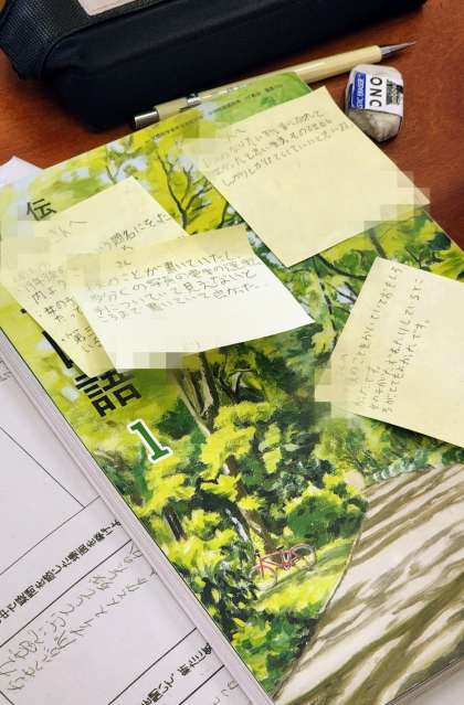 写真1 付箋にかかれた班員からのアドバイス。