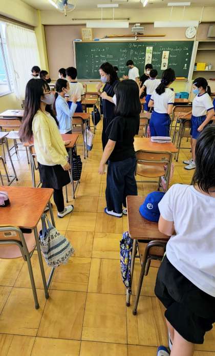 臨海小学校63名の6年生の皆さんに来校してもらい、中学校の授業と部活動を体験してもらいました。6年生の皆さんはとても明るく元気で、臆することなく中学校体験に臨んでくれました。