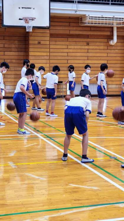 写真2 「体育」 バスケットボール・バレーボールを使って球技を行いました。