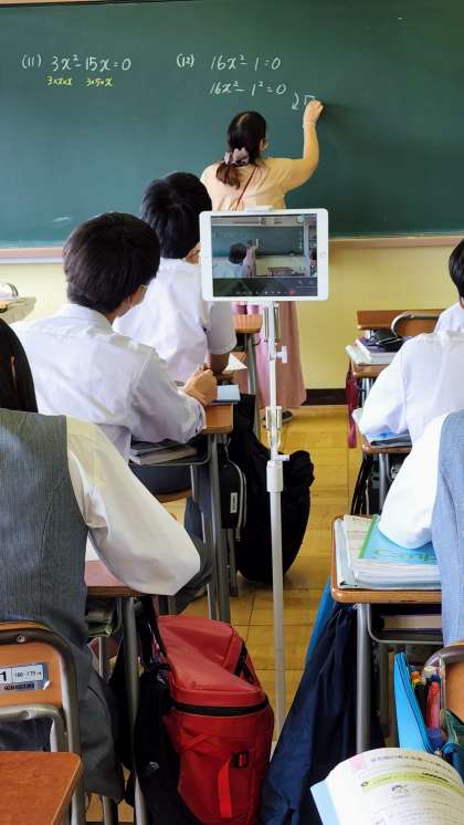 写真1 平方根を使って、効率よく2次方程式を解く授業が行われています。