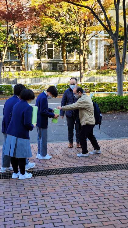 本校に出入りしているICT支援員のラインズの方々も募金にご協力くださりました。有難うございます。週番の有田先生も生徒会の生徒から募金を催促される一幕がありました。