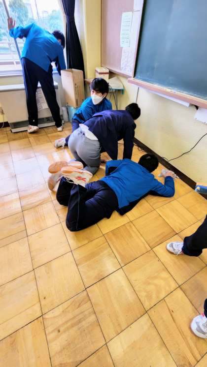 3年生男子がしっかりと雑巾掛けを行ってくれました。近頃、掃除で雑巾掛けを行うのは学校だけだと思われます。3年生男子3名が競争をして競っていました。