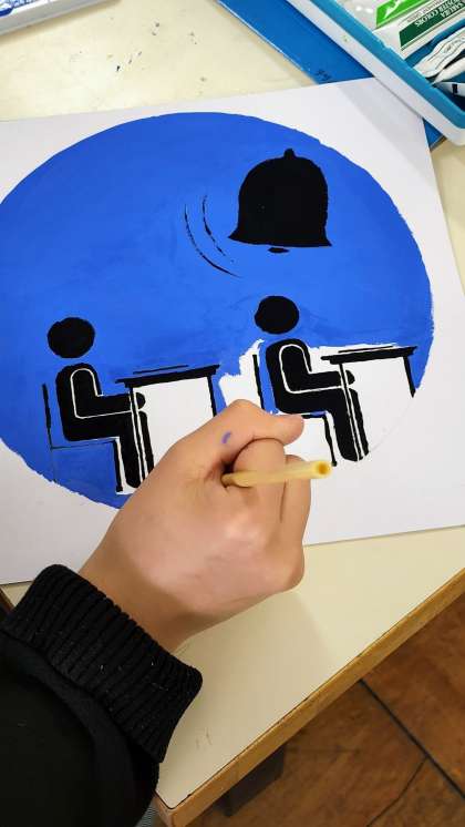 学校内の施設(図書館・美術室・音楽室・被服室・金工室等)や、部活動、注意喚起する事項など、学校生活の様々な場面をデザインすることに取り組みました。