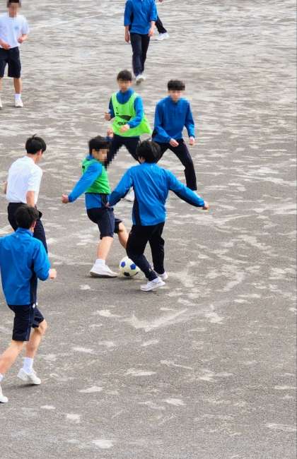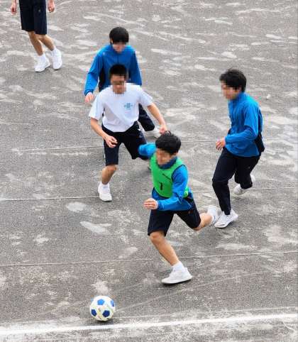 男子の種目はサッカーです。溜まっていた受検のストレスを解消するかのように、伸び伸びとプレーにいそしんでいました。