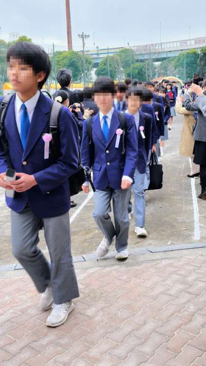 花道を卒業生一人ひとりが確かな足取りで歩み進みます。新たな進路、新たな道への門出です。自信をもって新たな高校生活に歩み出してください。お元気で‥では…。
