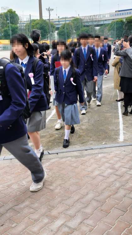 花道を卒業生一人ひとりが確かな足取りで歩み進みます。新たな進路、新たな道への門出です。自信をもって新たな高校生活に歩み出してください。お元気で‥では…。