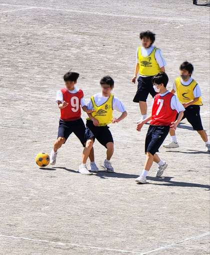 男子の種目はサッカーです。学年としての最後の行事です。どのクラスも勝利を目指して頑張りました。