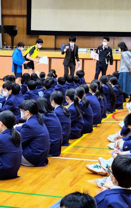 新入生部活動説明会では、運動部・文化部ともに、部長を中心にして、趣向を凝らして自分たちの部のよさを紹介してくれました。