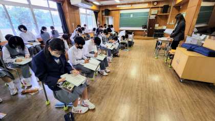 けやき祭「合唱コンクール」が終わり一息のところですが、今度は「鑑賞」の学習です。鑑賞曲は「魔王」です。シューベルト(オーストリア)の代表曲です。曲への感じ方、感想等、率直な意見等を書きます。