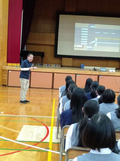 2年生対象のセーフティ教室が行われました。自転車のシミュレーターを使って、ルールや危険予測を学びました。実際に体験した6名は、それぞれ違うシミュレーションに対し、各々違った危険を感じたようでした。安全で楽しいサイクリングをしてほしいものです。