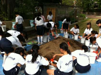 6月24日の総合学習の時間に、1年生はひまわりを植えました。本校では2年生の夏に、新潟県の津南町へ林間学校に出かけます。津南町はひまわりでできた大きな迷路が有名です。そんな縁もあって、数年前からひまわりを育てています。どの鉢も元気に育つちますように。