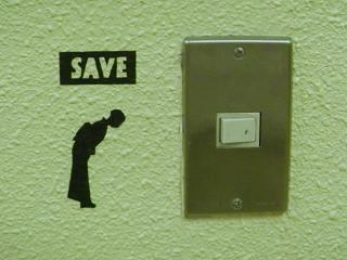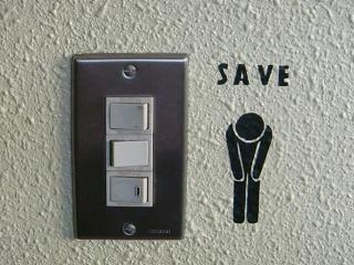 世の中で節電が叫ばれる前から、本校では節電に取り組んできました。生徒達に意欲的に取り組んでもらうために様々な工夫をしています。写真は照明スイッチの横に描かれた絵文字(ピクトグラム)です。用務主事の発案で、自ら絵文字を描きました。本校にお越しの際は是非、ご覧ください。