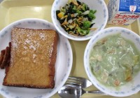 ごはん 春野菜と厚揚げの炊き合わせ たこやきくん こんぶ和え 牛乳