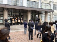 卒業生は在校生の見送りの後「けやき広場」に戻り、学年の先生方との写真撮影の会とな...