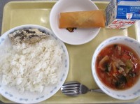 かぶの葉としらすのごはん 揚げボラのごまだれがけ ブロッコリーの芯ごとサラダ かぶの味噌汁 豆乳今日は「みんなの給食」です。かぶの葉や低利用魚のボラ等食品ロスに配慮した献立になっています。