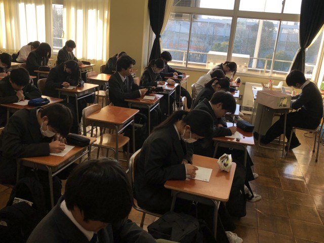 1・2年生は週末の朝自習の時間に「テスト」を行っています。基礎学力の向上を目指して、取り組んでいます。生徒たちが静かな雰囲気で問題にあったている姿はとっも素晴らしいです。