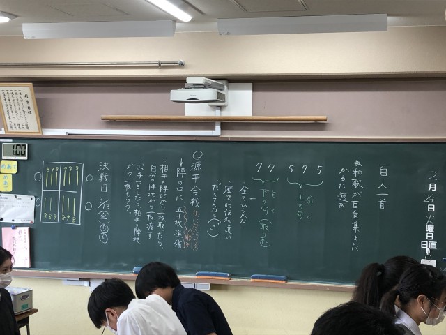 1年生の国語の授業では「百人一首」を扱っています。古典の学習や百人一首(源平戦)の仕来りなど、多くの学びがあります。また3月13日(金)の午後に1学年で「百人一首大会」を行います。その準備学習も兼ねて...
