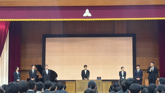 6名の転入してきた先生を着任式で迎えまっした。その後そのまま「始業式」に入り、下級生に優しい気持ちで接していくことや挨拶をさらに丁寧にということを校長は話していました。生徒は新クラスに引っ越し、入学式...