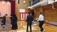 入学式の準備の様子です。在校生は卒業生を経験しているので、作業も時間短縮でできました。