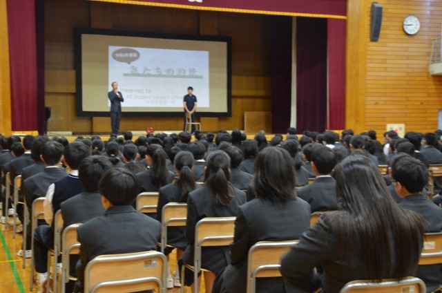 4月8日(水)の1校時に生徒会主催の全校学活が行われました。校則など学校生活全体に関することについて、生徒会本部役員が説明をしました。寸劇が入ったり、スライドを工夫したりととても分かりやすいガイダンス...