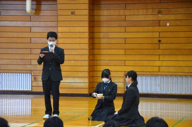 4月8日(水)の1校時に生徒会主催の全校学活が行われました。校則など学校生活全体に関することについて、生徒会本部役員が説明をしました。寸劇が入ったり、スライドを工夫したりととても分かりやすいガイダンス...