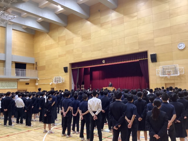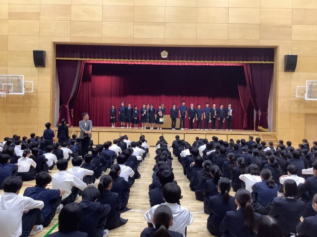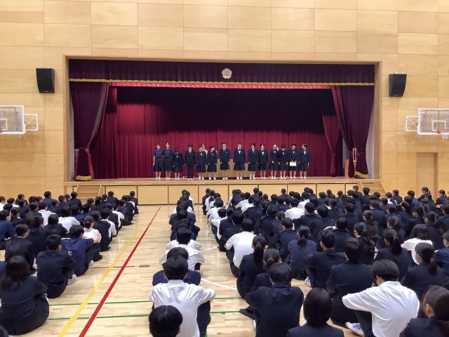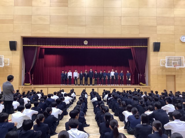 「毎日校舎中に歌声が響き渡り、生徒の頑張りを感じます。行事は結果ではなく、過程が大切です。ともに切磋琢磨し絆を深め、そして支えてくれる人への感謝を忘れずに当日を迎えてほしい。」とお話がありました。