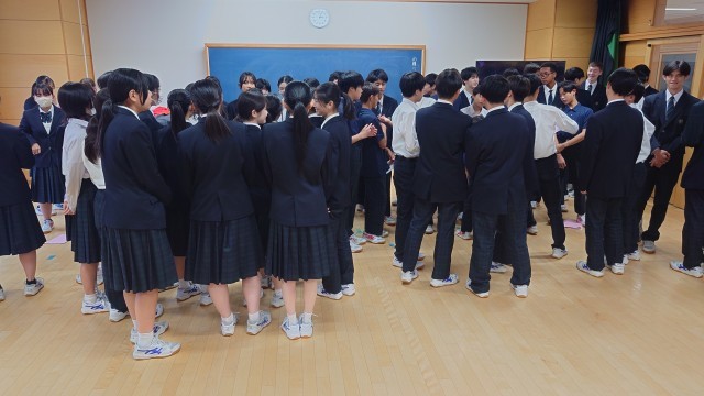 コマ2、伝統のタテ割り(=各学年1組の繋がりなど)練習。