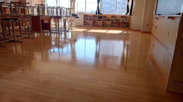 そのために?…3学年全教室、ワックスかけておきました。女子バスケ、閉鎖にならなかった有志のみんな、ありがとう。