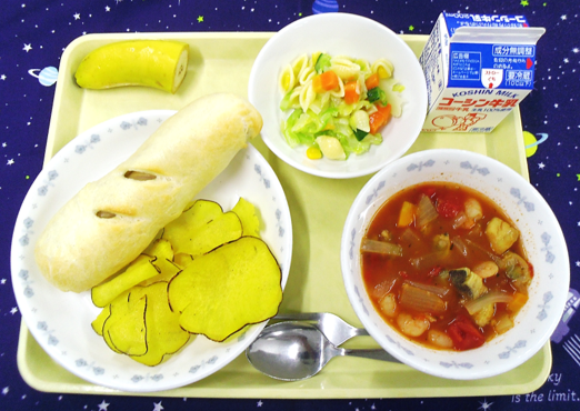 「ブイヤベーススープ」は魚介たっぷりのトマトスープです。魚介のうま味たっぷりで、コクのあるスープに仕上がっていました。