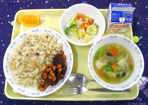 肉料理の悲しいところはせっかくのリクエストで大きめの鶏肉を入れても、焼くとずいぶんと可愛らしいサイズに縮んでしまうので、生徒も思っていたサイズで来なかったので残念だったのではないかと思ってしまいます。今回のおかわりじゃんけんはも白熱しており、廊下に響き渡る声を聞きました。