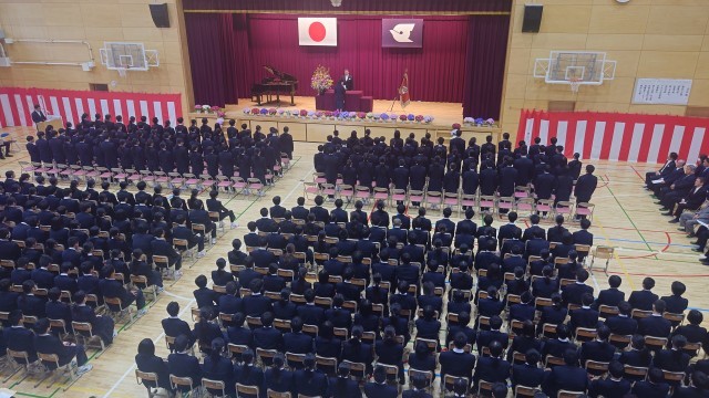 新入生、それぞれの正装に身を包んだ小学校卒業から約半月ですね。…そして今日、みんなが同じ標準服に身を包んだ中学校生活の始まり。