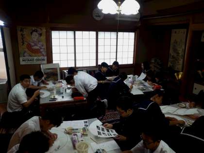 こちらの生徒たちは、京扇子づくりにチャレンジ中です!