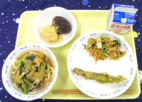 12日(金)・八宝麺・黄花湯(ホワンホワタン)・開口笑(カイコウショウ)・牛乳1...