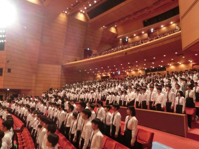 江戸川区総合文化センターに全校生徒が無事集合しました。