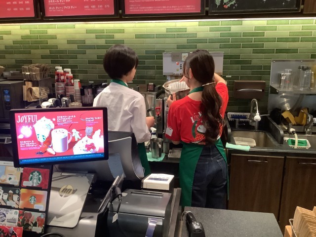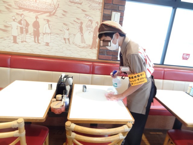 写真は、飲食店での活動の様子です。
