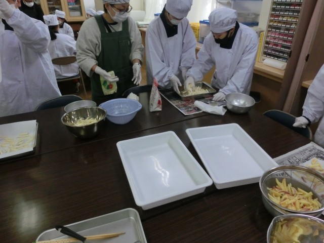 マッシュポテトやフライドポテト等、家庭科室は食欲をそそる臭いで