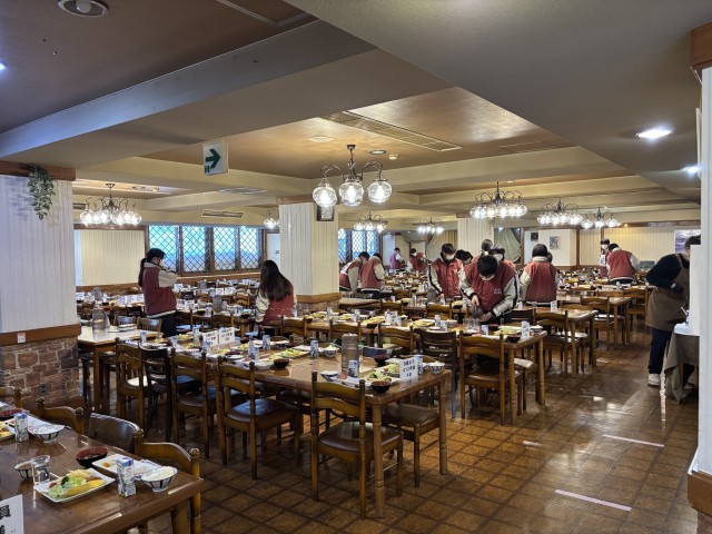 今日の朝食となります。起床は6時45分でしたが、ぐっすりと寝ていた生徒が多いようです。朝食後は午前のレッスンです。楽しい時間をみんなで過ごしてほしいと思います。