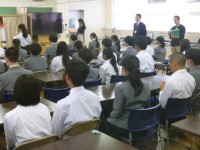 開校式を行い、食事までの時間に検温、しおりの記入などを行っています。