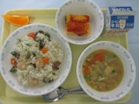 貧血予防に役立つレバーは、一般的に苦手な人も多い食品ですが、給食ではしっかり臭みを消して油であげているため、人気があります。今日は、チリパウダーやカレー粉を合わせたスパイシーな味付けにして出しました。