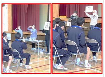 3年生が、江戸川区福祉ボランティア団体協議会の方々による「バリアフリー体験」を行いました。手話の体験、点字の学習、アイマスクをして誘導体験、車いす介助などいろいろな体験をしました。アイマスクをして階段を下りたり、段差のあるところを歩くことがどれだけ不安か身をもって感じていました。車いす介助では、ちょっとした段差や地面が不安定な場所の移動が大変なことも学びました。