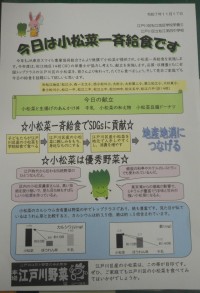 • 今日は小松菜一斉給食です
