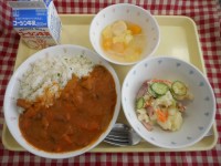 ハッシュドポークライス ポテトサラダ フルーツポンチ 牛乳ハッシュドポークライス...