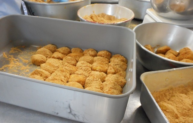 白玉粉、豆腐、かぼちゃをねってお月見団子をつくりました。