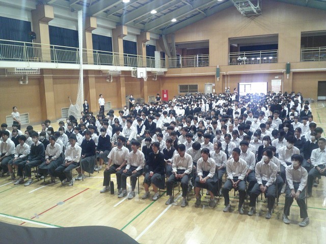 17日の前日指導の様子です。実行委員長や先生方からお話がありました。そのあと、2年生がパイプ椅子並べなど会場づくりをしてくれました。