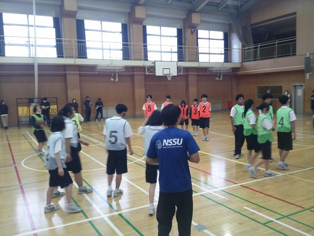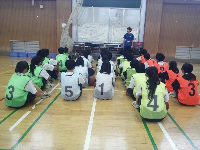 6校時に教育実習生がバスケットボールの授業を行いました。ホワイトボードに授業の内容が掲示されているので、本時でやることを把握しやすかったと思います。生徒も真剣に、かつ楽しく、授業に取り組みました。
