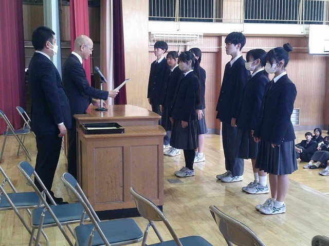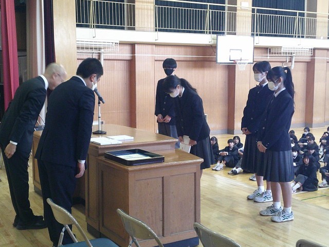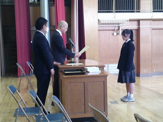 上:女子バドミントン部、中:環境をよくする絵画コンクール、下:生徒会ユニセフボランティア活動。