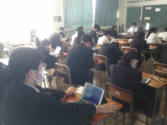 本日、1、2年生を対象に江戸川区学力調査を実施しています。1時間目は、タブレットを使った学習意識調査です。