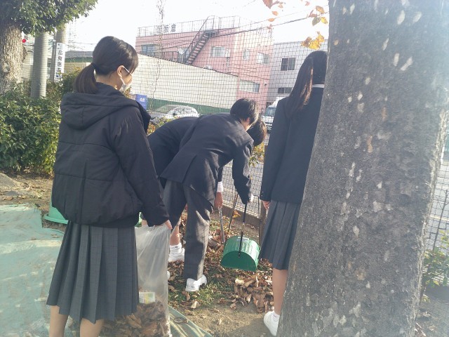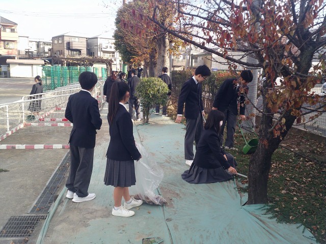 学校敷地の東側、通称「四中通り」に面した植樹スペースを清掃していました。