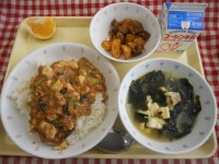 まぶしたアーモンドが香ばしくアクセントになっています。生徒が大好きな献立です
