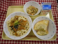 夏野菜チップ(ゴーヤ入り)、冷凍みかん、牛乳